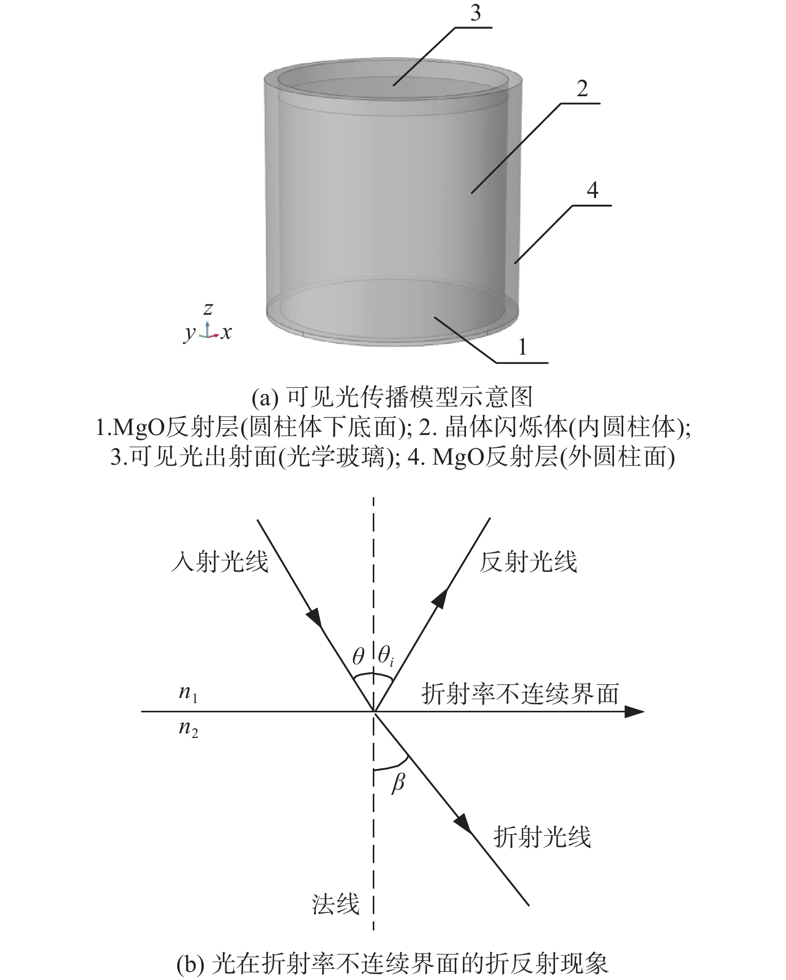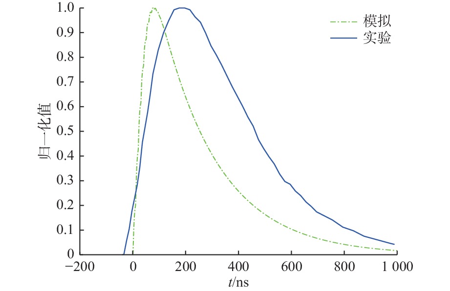 137Cs source radiation field. The experimental results show that the rise/fall time ratio of the output pulse signal of detector is 0.39, which is about 7.69% different than the simulated value of 0.36, indicating that the output results of the simulation calculation model are basically consistent with the measured data, which preliminarily proves the correctness of the simulation calculation model and calculation analysis process. The proposed method is of certain reference significance for deeply understanding transmission law of fluorescent visible light excited by radiation particles in crystal scintillator and optimization design of scintillator radiation detector system.