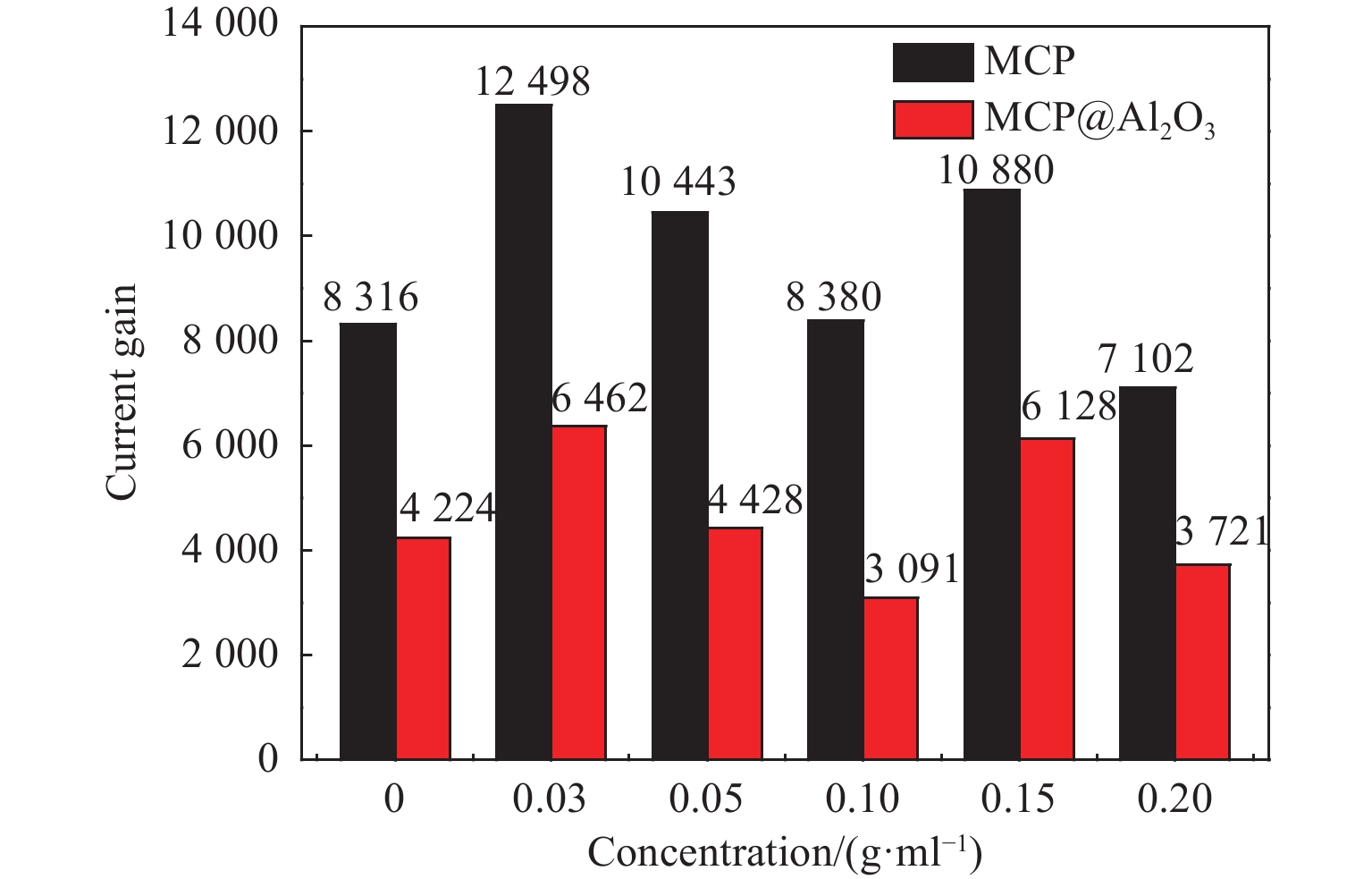 3 ion barrier film and the electrical characteristics of ion barrier microchannel plate (MCP). The non-solvent component was changed from ultrapure water to NaCl solution, and the compactness and thickness of the organic membrane prepared by different NaCl solution concentrations were analyzed by metallographic microscope and step test analyzer. The compactness, the electrical transmittance characteristics and the electrical characteristics of ion barrier MCP prepared by the corresponding organic membrane were measured. The research results show that when the concentration of NaCl solution is 0.05 g·ml