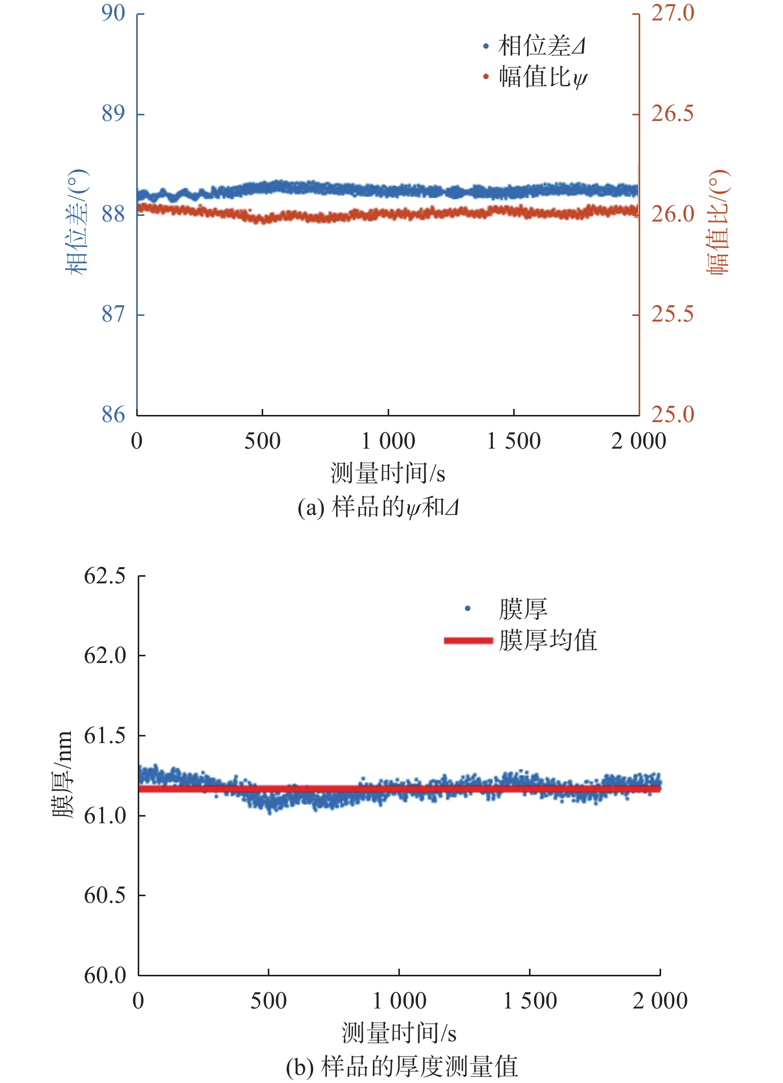 2 standard sample was tested for 2 000 times. The experimental results show that when the sampling time is set to 20 ms, the repeatability accuracy of amplitude ratio and phase difference is better than 0.001°, and the repeatability accuracy of film thickness of the measured sample is 0.001 nm, which verifies that the design has better measurement repeatability and higher measurement accuracy.